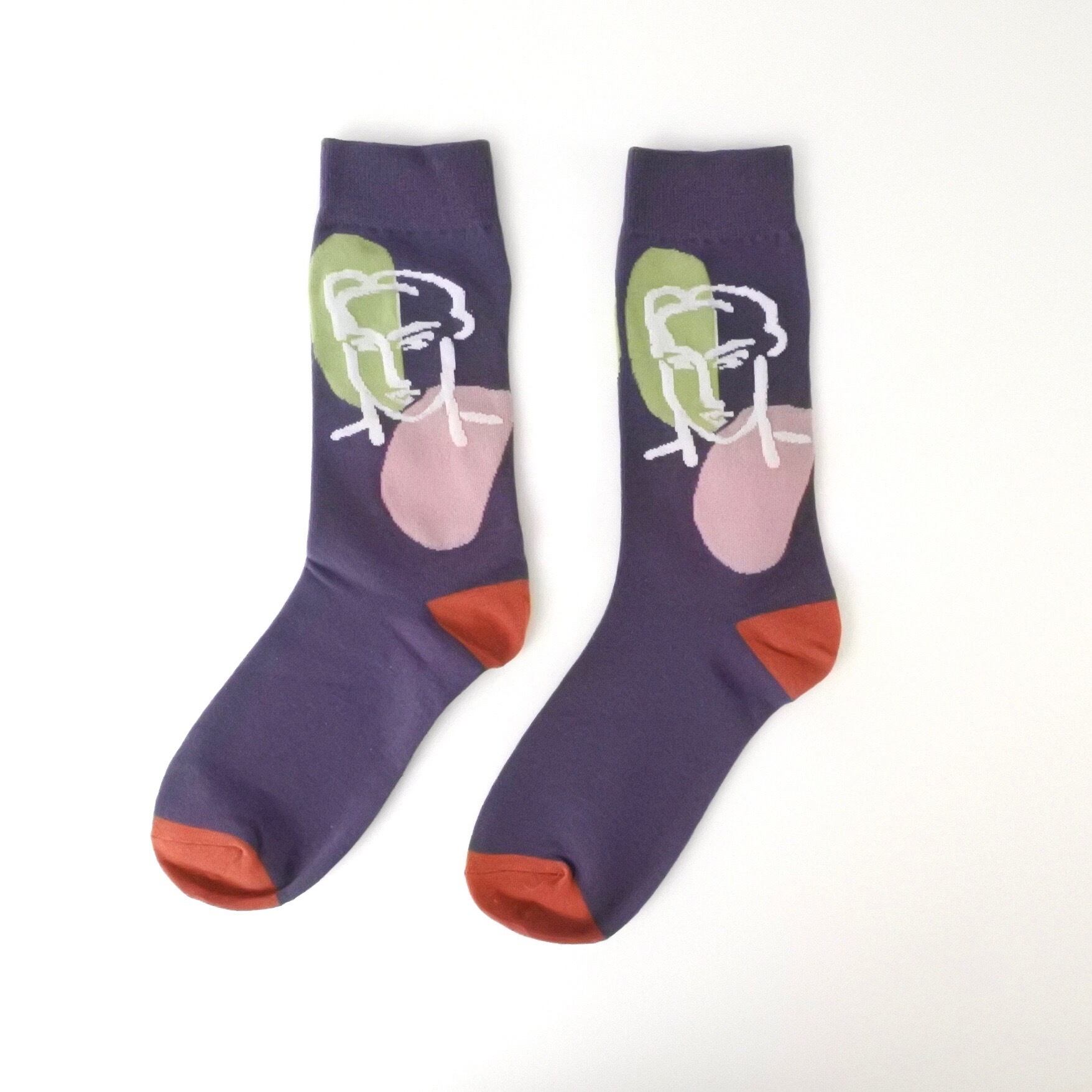 ユニセックスサイズのドローイングアートモチーフのソックスです。