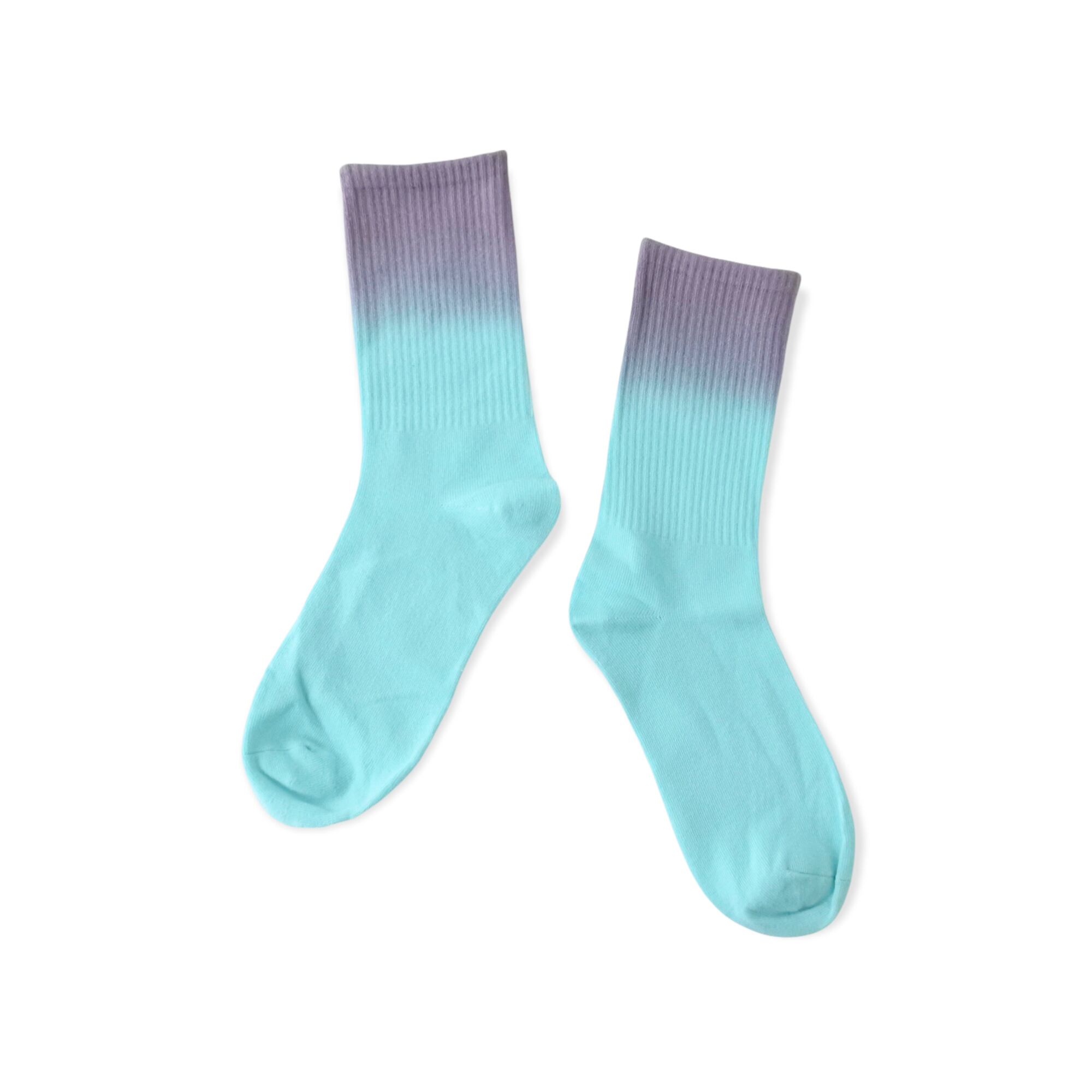 スニーカーやサンダルの足元コーデにアクセントを付けられるグラデーション染めの靴下です。