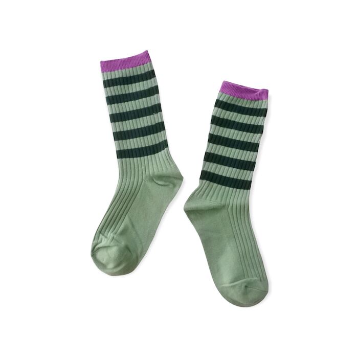 リブ 切り替え ボーダー ソックス (グリーン)