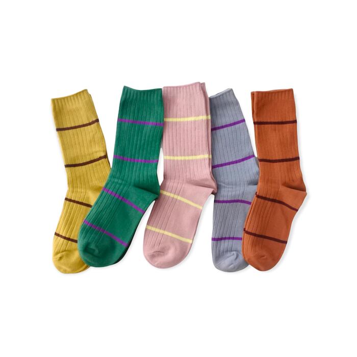 ユニセックスサイズのボーダー柄の靴下です。