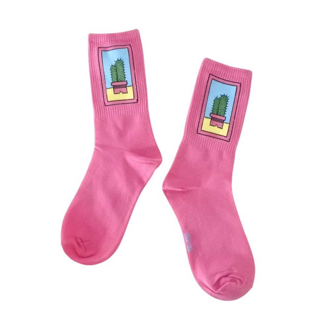 サボテンプリント クルーソックス