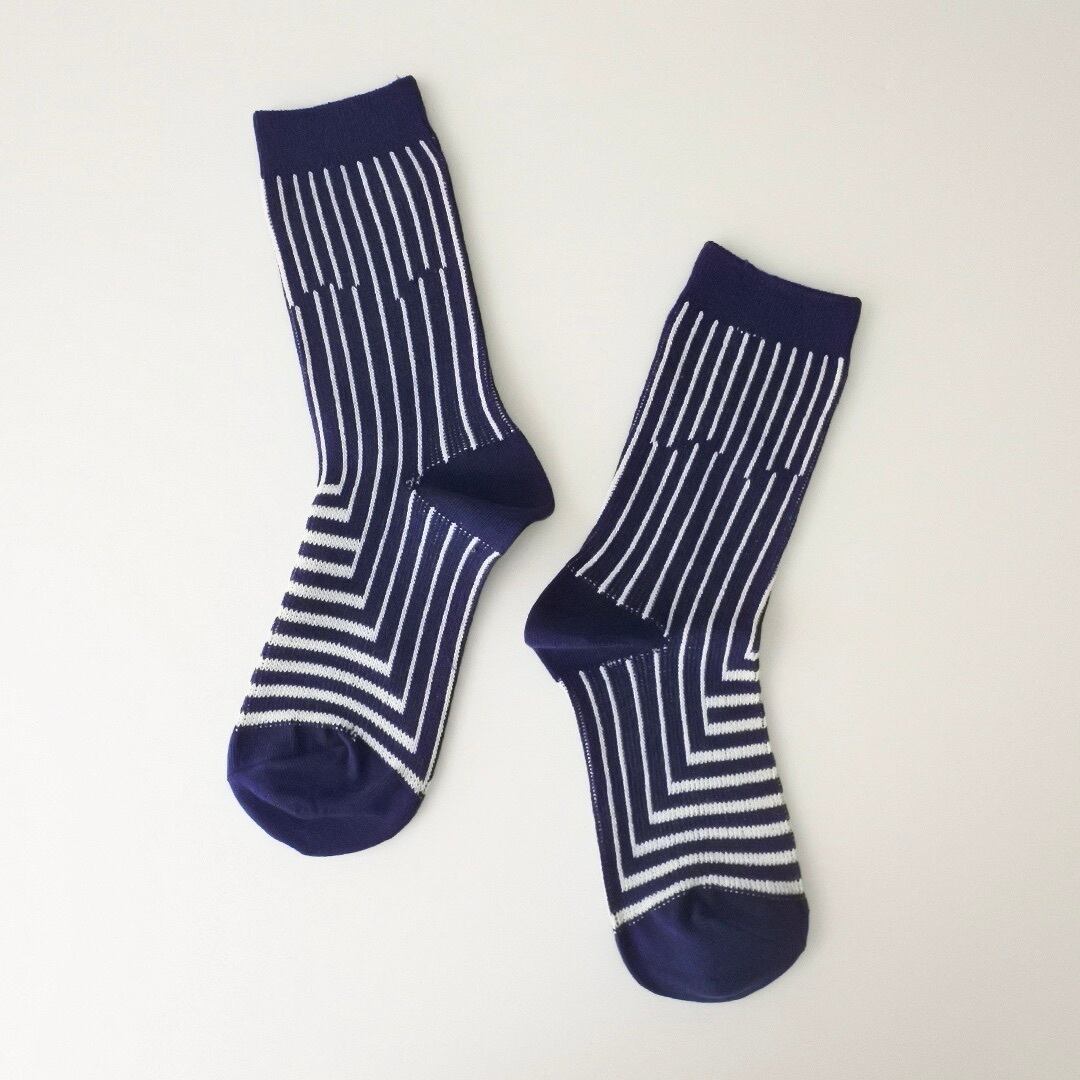 ランダム ストライプ クルー ソックス(ネイビー)