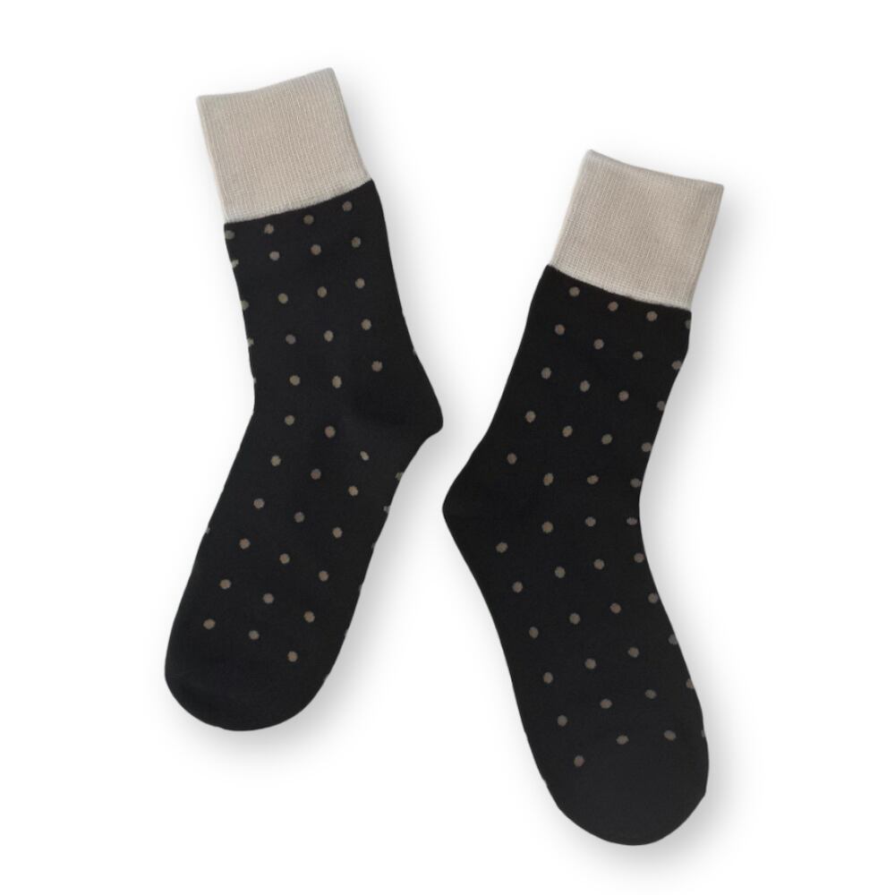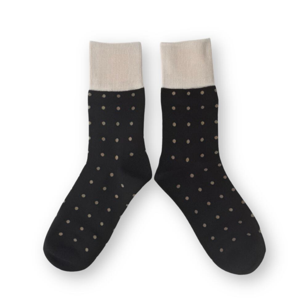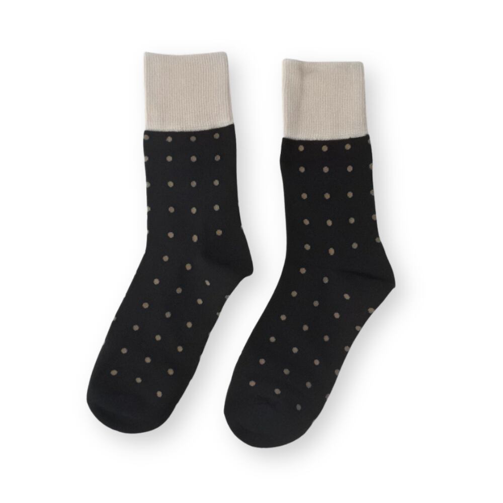 配色切り替えになったワイドリブがポイントになった足元のおしゃれにおすすめな靴下!